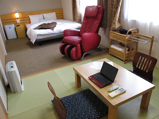 Well, after an average flight from Germany via Amsterdam to Osaka, I took a domestic flight with StarFlyer! I tell you, it was really flying like a star. Those flight attendents, why are they called so nowadays anyway? What´s wrong with the name Stewardess??? These 3 girls who were serving us were actually Sky Angels directly from heaven. 3 japanese beauties, gentle and fair, I thought I must be dreamin' :-D ....no, it was a very pleasant flight. I nearly forgot my jetlag. Now I´m in my hotelroom, relaxing, wonder what to do tonight. Everything is possible, bit no Bob concert today, so it´s free flowing.